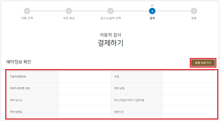 결제를 완료하시면, 최종적으로 자동차검사 예약을 하실 수 있습니다.