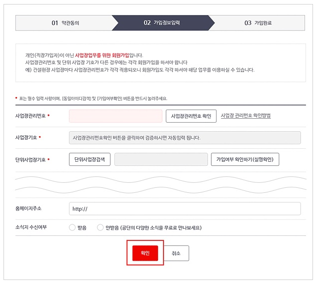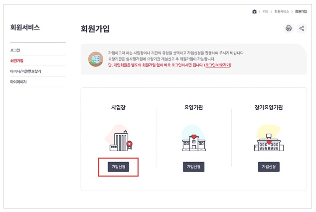 2) 사업장/가입신청 버튼을 클릭합니다.