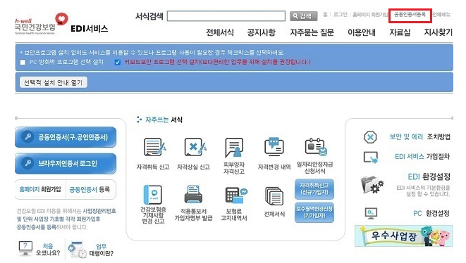 건강보험 EDI 서비스의 최대 장점은 공단을 방문하여 복잡한 창구에서 기다릴 필요 없이 가정이나 사무실에서 언제 어디서든 인터넷을 통하여 빠르게 업무를 처리하는 것으로 사용해 보시는 것을 권장드립니다.