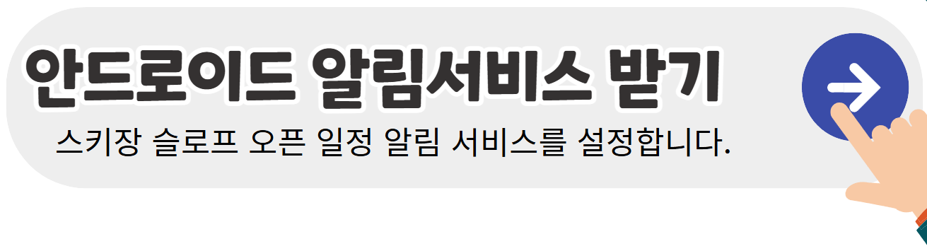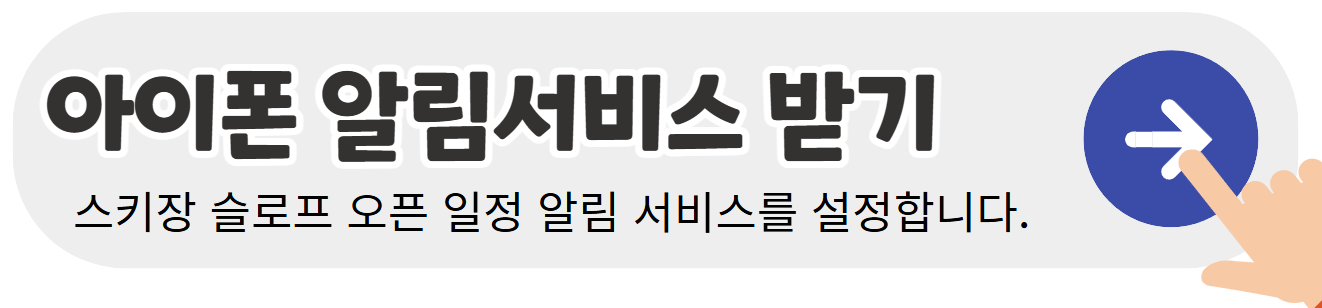- 슬로프 오픈 일정은 곤지암 리조트 모바일 앱을 통해 알림 서비스를 받을 수 있습니다.