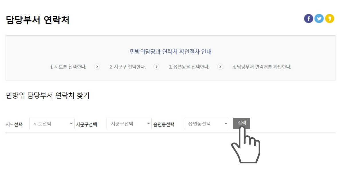 - 민방위 사이버 교육센터에서 해당 지역의 시·군·구를 선택합니다.