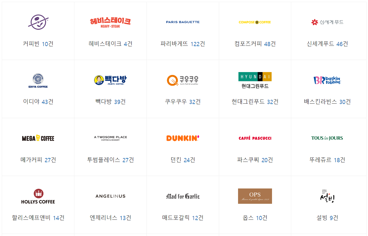 흔히들 길을 거닐다 본 적 있는 카페나 음식정 등의 브랜드 채용은 업종별로 10개의 카테고리로 구분하여 일자리 정보를 제공하고 있습니다. 예를 들어 카페/레스토랑 카테고리에서는 할리스, 컴포즈커피, 현대그린푸드, 베스킨라빈스 등 다양한 브랜드에서 모집 중인 구직자 정보를 확인하실 수 있습니다.