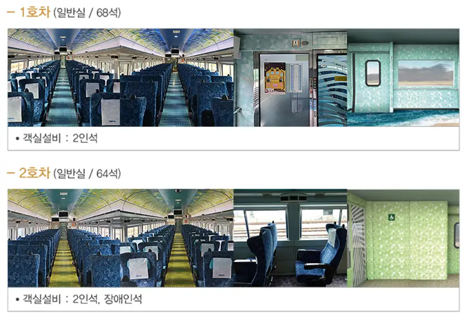 | 2호차 | 일반실(64석) | 2인석,장애인석 |