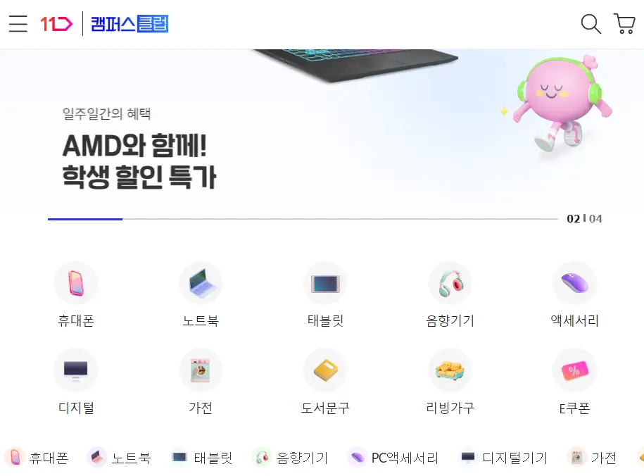 11번가 캠퍼스클럽 할인 상품 브랜드