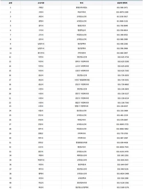 경기도 시·군·구에 따른 문의처는 아래의 이미지를 참고하시기 바랍니다.